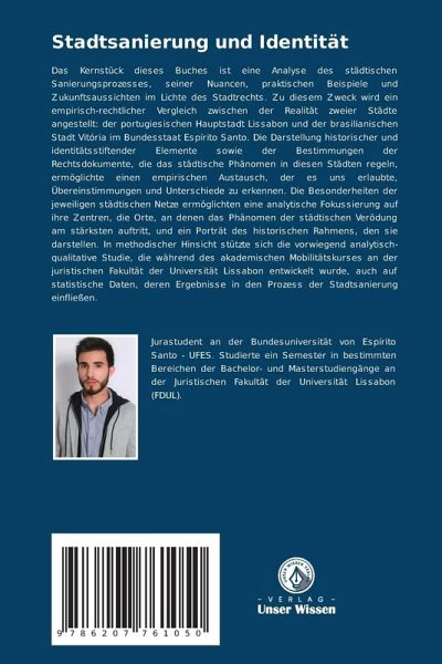 Das Kernstück dieses Buches ist eine Analyse des städtischen Sanierungsprozesses, seiner Nuancen, praktischen Beispiele und Zukunftsaussichten im Lichte des Stadtrechts. Zu diesem Zweck wird ein empirisch-rechtlicher Vergleich zwischen der Realität zweier Städte angestellt: der portugiesischen Hauptstadt Lissabon und der brasilianischen Stadt Vitória im Bundesstaat Espírito Santo. Die Darstellung historischer und identitätsstiftender Elemente sowie der Bestimmungen der Rechtsdokumente, die das städtische Phänomen in diesen Städten regeln, ermöglichte einen empirischen Austausch, der es uns erlaubte, Übereinstimmungen und Unterschiede zu erkennen. Die Besonderheiten der jeweiligen städtischen Netze ermöglichten eine analytische Fokussierung auf ihre Zentren, die Orte, an denen das Phänomen der städtischen Verödung am stärksten auftritt, und ein Porträt des historischen Rahmens, den sie darstellen. In methodischer Hinsicht stützte sich die vorwiegend analytisch-qualitative Studie, die während des akademischen Mobilitätskurses an der juristischen Fakultät der Universität Lissabon entwickelt wurde, auch auf statistische Daten, deren Ergebnisse in den Prozess der Stadtsanierung einfließen.