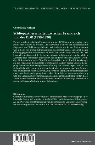 Partnerschaften zwischen Frankreich und der DDR hatten vorranging einen politischen Nutzen zu erfüllen. Die SED wollte sich von der Bundesrepublik abgrenzen und die Überlegenheit des zweiten deutschen Staates demonstrieren, was in Bonn mit großer Aufmerksamkeit beobachtet wurde. Die zunehmende Öffnung gegenüber dem Westen ab Ende der 1950er Jahre brachte die DDR jedoch in eine Zwickmühle, da sie einerseits auf politische und gesellschaftliche Kontakte nach Frankreich angewiesen war, andererseits aber Angst vor westlicher Einflussnahme hatte. Diese Konstellation blieb nicht ohne Rückwirkungen auf die Praxis und die Kontakte zwischen den Städten beider Länder, die geprägt waren von der ideologischen Aufladung des Kalten Krieges. Anhand von sieben Fallstudien werden in dieser Arbeit die Intentionen der französischen und ostdeutschen Akteure, deren Ziele sowie die Praktiken der Partnerschaften analysiert. Berücksichtigung findet dabei die politische Instrumentalisierung und ihre Grenzen in der kommunalen Zusammenarbeit. Erstmalig wird in dieser Studie zudem die besondere Rolle der Stasi innerhalb der Städtepartnerschaften über den Eisernen Vorhang hinweg beleuchtet.