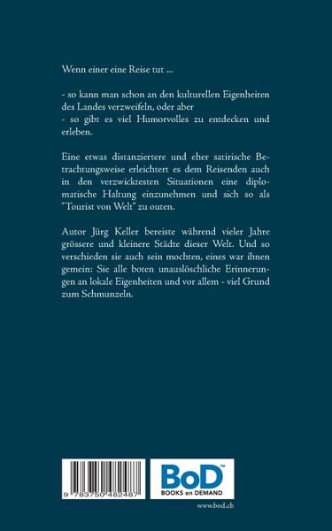 Wenn einer eine Reise tut - so kann man schon an den kulturellen Eigenheiten des Landes verzweifeln, oder aber:- so kann so einiges passieren, das einem zum Lachen bringt.Eine etwas distanziertere, eher satirische Betrachtungsweise erleichtert es dem Reisenden auch in den verzwicktesten Situationen eine diplomatische Haltung einzunehmen und sich so als "Tourist von Welt" zu outen.Autor Jürg Keller bereiste während vieler Jahre grössere und kleinere Städte dieser Welt. Und so verschieden sie auch sein mochten, eines war ihnen gemein: sie alle boten unauslöschliche Erinnerungen an lokale Eigenheiten und vor allem - viel Grund zum Schmunzeln.