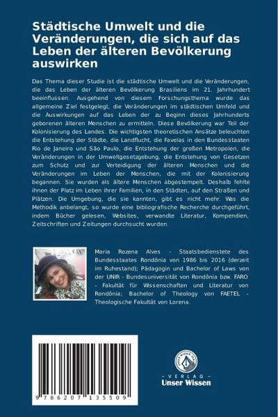 Das Thema dieser Studie ist die städtische Umwelt und die Veränderungen, die das Leben der älteren Bevölkerung Brasiliens im 21. Jahrhundert beeinflussen. Ausgehend von diesem Forschungsthema wurde das allgemeine Ziel festgelegt, die Veränderungen im städtischen Umfeld und die Auswirkungen auf das Leben der zu Beginn dieses Jahrhunderts geborenen älteren Menschen zu ermitteln. Diese Bevölkerung war Teil der Kolonisierung des Landes. Die wichtigsten theoretischen Ansätze beleuchten die Entstehung der Städte, die Landflucht, die Favelas in den Bundesstaaten Rio de Janeiro und São Paulo, die Entstehung der großen Metropolen, die Veränderungen in der Umweltgesetzgebung, die Entstehung von Gesetzen zum Schutz und zur Verteidigung der älteren Menschen und die Veränderungen im Leben der Menschen, die mit der Kolonisierung begannen. Sie wurden als ältere Menschen abgestempelt. Deshalb fehlte ihnen der Platz im Leben ihrer Familien, in den Städten, auf den Straßen und Plätzen. Die Umgebung, die sie kannten, gibt es nicht mehr. Was die Methodik anbelangt, so wurde eine bibliografische Recherche durchgeführt, indem Bücher gelesen, Websites, verwandte Literatur, Kompendien, Zeitschriften und Zeitungen durchsucht wurden.