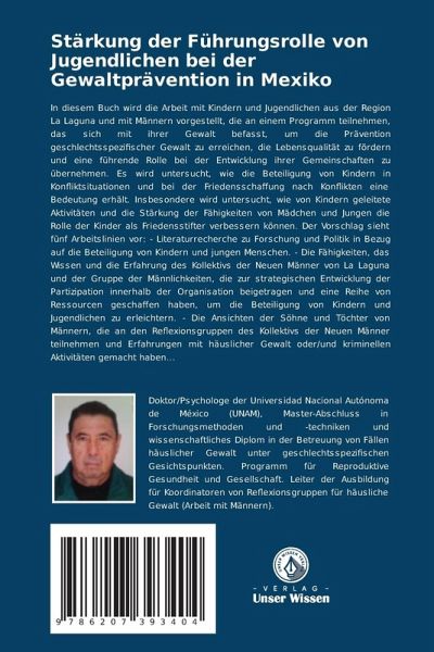 In diesem Buch wird die Arbeit mit Kindern und Jugendlichen aus der Region La Laguna und mit Männern vorgestellt, die an einem Programm teilnehmen, das sich mit ihrer Gewalt befasst, um die Prävention geschlechtsspezifischer Gewalt zu erreichen, die Lebensqualität zu fördern und eine führende Rolle bei der Entwicklung ihrer Gemeinschaften zu übernehmen. Es wird untersucht, wie die Beteiligung von Kindern in Konfliktsituationen und bei der Friedensschaffung nach Konflikten eine Bedeutung erhält. Insbesondere wird untersucht, wie von Kindern geleitete Aktivitäten und die Stärkung der Fähigkeiten von Mädchen und Jungen die Rolle der Kinder als Friedensstifter verbessern können. Der Vorschlag sieht fünf Arbeitslinien vor: - Literaturrecherche zu Forschung und Politik in Bezug auf die Beteiligung von Kindern und jungen Menschen. - Die Fähigkeiten, das Wissen und die Erfahrung des Kollektivs der Neuen Männer von La Laguna und der Gruppe der Männlichkeiten, die zur strategischen Entwicklung der Partizipation innerhalb der Organisation beigetragen und eine Reihe von Ressourcen geschaffen haben, um die Beteiligung von Kindern und Jugendlichen zu erleichtern. - Die Ansichten der Söhne und Töchter von Männern, die an den Reflexionsgruppen des Kollektivs der Neuen Männer teilnehmen und Erfahrungen mit häuslicher Gewalt oder/und kriminellen Aktivitäten gemacht haben...