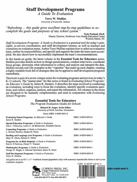 By illustrating sound evaluation practices with realistic examples, this book provides an essential guide to each aspect of analyzing staff development programmes in schools. The author pays special attention to the process of selecting an evaluation team, the responsibilities of the team and implementing the team's recommendations.