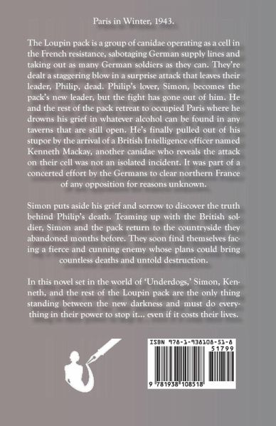 Paris in Winter, 1943. The Loupin pack is a group of canidae operating as a cell in the French resistance, sabotaging German supply lines and taking out as many German soldiers as they can. After a series of successes, they're dealt a staggering blow in a surprise attack that leaves their leader, Philip, dead. Philip's lover, Simon, becomes the pack's new leader, but the fight has gone out of him. He and the rest of the pack retreat to occupied Paris where he drowns his grief in whatever alcohol can be found in any taverns that are still open. He's finally pulled out of his stupor by the arrival of a British Intelligence officer named Kenneth Mackay, another canidae who reveals the attack on their cell was not an isolated incident. It was part of a concerted effort by the Germans to clear northern France of any opposition for reasons unknown. Simon puts aside his grief and sorrow to discover the truth behind Philip's death. Teaming up with the British soldier, Simon and the pack return to the countryside they abandoned months before. They soon find themselves facing a fierce and cunning enemy whose plans could bring countless deaths and untold destruction. In this novel set in the world of 'Underdogs,' Simon, Kenneth, and the rest of the Loupin pack are the only thing standing between the new darkness and must do everything in their power to stop it... even if it costs their lives.