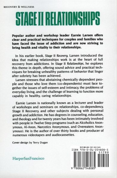 Earnie Larsen has been intimately invloved with people in Twelve Step programs for twenty years. He has degrees in counceling, education, and theology, and he lectures, counsels, and conducts workshops and seminars nationally on improving interpersonal relationships. He is the author of thirty books.