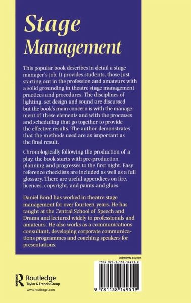 This popular book describes in detail a stage manager's job. It provides those just starting out in the profession with a solid grounding in theatre stage management practices and procedures. The disciplines of lighting, set design and sound are discussed but the main focus is the management of these elements and the processes and scheduling that go together to provide effective results. Chronologically following the production of a play, the book starts with pre-production planning and progresses to opening night. With easy reference checklists and a full glossary, it is the essential guide to stage management.