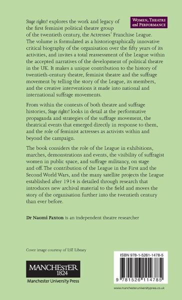 Drawing upon previously unseen archival material, this book brings to life the story of the Actresses' Franchise League from 1908-1958, building a picture of this diverse, exciting and innovative organisation that opens up and extends previous scholarship of the suffrage movement, and of political and feminist networks in twentieth century theatre. -- .