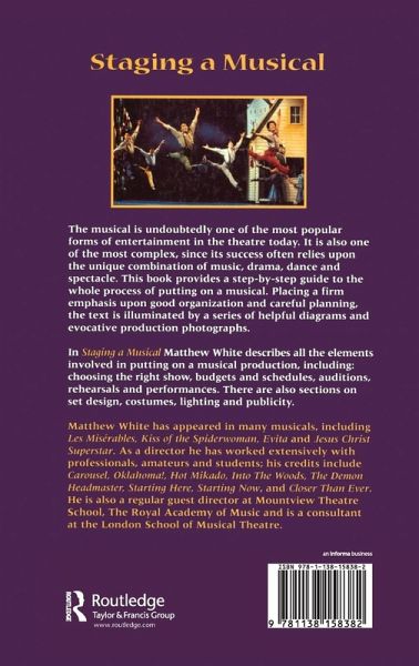 In Staging a Musical, Matthew White describes all the elements involved in putting on a musical production, including: how to choose the right show, budgets and schedules, auditions, rehearsals, and performances.