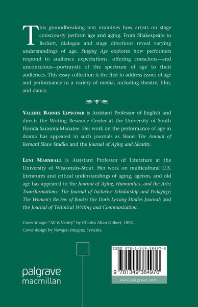 This text explores how performers offer conscious-and unconscious-portrayals of the spectrum of age to their audiences. It considers a variety of media, including theatre, film, dance, advertising, and television, and offers critical foundations for research and course design, sound pedagogical approaches, and analyses.