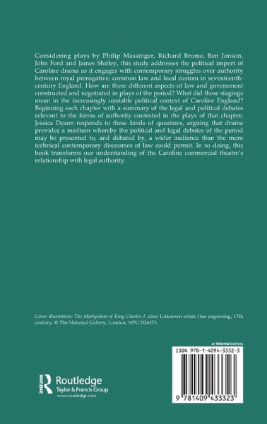 Considering plays by Philip Massinger, Richard Brome, Ben Jonson, John Ford and James Shirley, this study addresses the political import of Caroline drama as it engages with contemporary struggles over authority between royal prerogative, common law and local custom in seventeenth-century England. How are these different aspects of law and government constructed and negotiated in plays of the period? What did these stagings mean in the increasingly unstable political context of Caroline England? Beginning each chapter with a summary of the legal and political debates relevant to the forms of authority contested in the plays of that chapter, Jessica Dyson responds to these kinds of questions, arguing that drama provides a medium whereby the political and legal debates of the period may be presented to, and debated by, a wider audience than the more technical contemporary discourses of law could permit. In so doing, this book transforms our understanding of the Caroline commercial theatre's relationship with legal authority.
