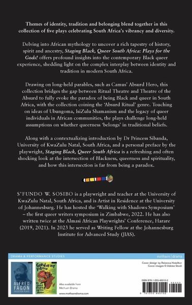 Themes of identity, tradition, and belonging blend together in this collection of five plays celebrating South Africa's vibrancy and diversity. Delving into African mythology to uncover a rich tapestry of history, spirit, and ancestry, Staging Black, Queer South Africa: Plays for the Gods! offers profound insights into the contemporary Black queer experience, shedding light on the complex interplay between identity and tradition in modern South Africa. Drawing on long-held parables, such as Camus' Absurd Hero, this collection bridges the gap between Ritual Theatre and Theatre of the Absurd to fully evoke the paradox of being Black and queer in South Africa, with the collection coining the 'Absurd Ritual' genre. Touching on ideas of Ubungoma, IsiZulu Shamanism, and the legacy of queer individuals in African communities, the plays challenge long-held assumptions on whether queerness 'belongs' in traditional beliefs. Along with a contextualizing introduction by Dr. Princess Sibanda, University of KwaZulu Natal, South Africa, and a personal preface by the playwright, Staging Black, Queer South Africa is a refreshing and often shocking look at the intersection of Blackness, queerness, and spirituality, and how this intersection is far from being a paradox.