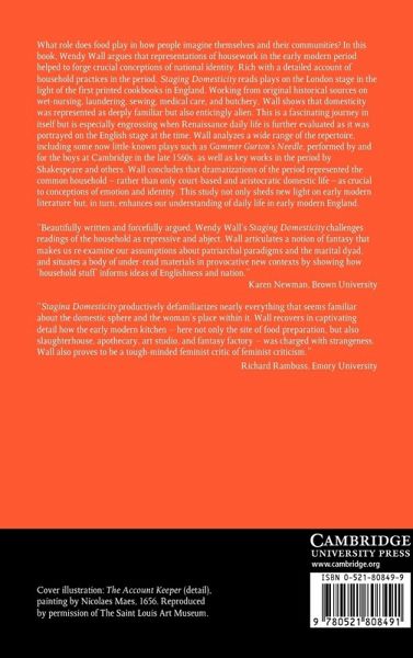 What role does food and cooking play in how people imagine themselves and their communities? In this book Wendy Wall argues that representations of housework in the early modern period helped to forge crucial conceptions of national identity. Rich with a detailed account of household practices in the period, Staging Domesticity reads plays on the London stage in the light of the first printed cookbooks in England. Working from original historical sources on wetnursing, laundering, sewing, medical care, and butchery, Wall shows that domesticity was represented as deeply familiar but also enticingly alien. Wall analyses a wide range of the repertoire, including some now little-known plays, as well as key works in the period by Shakespeare and others. Wall concludes that, rather than dramatisations of only court-based and aristocratic domestic life, literature of the period drew on work from the more common household.
