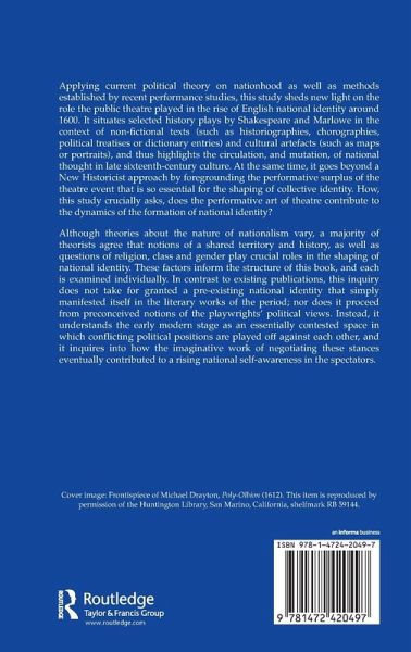 Applying current political theory on nationhood and methods established by recent performance studies, this study sheds new light on the role the public theatre played in the rise of English national identity around 1600. It situates selected history plays in the context of non-fictional texts - historiographies, chorographies and political treatises - and cultural artefacts such as maps or portraits to highlight the circulation, and mutation, of national thought in late 16th-century culture.
