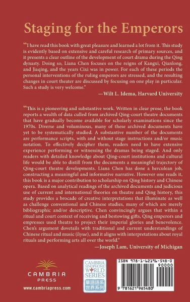 Theatrical performance occupied a central place in the emotional and political life of the Qing dynasty imperial household. For over two centuries, the Qing court poured a tremendous amount of human and material resources into institutionalizing the theatrical arts for the purposes of entertainment and edification. The emperors and empresses were ardent patrons and key players in establishing an artistic form that the court theatre called its own. They went to great lengths to cultivate a discerning taste in theatre and oversaw the artistic and managerial aspects of court theatrical activities. In the imperial theatrical spaces within and outside the Forbidden City, which were designed and built with the capacity to produce stunning visual effects, theatrical productions were staged to entertain imperial family members and to impress obeisance-paying guests from near and afar. Much scholarly attention has been devoted to understanding the dynamics between the Qing-dynasty court theatre and the burgeoning popular theatrical traditions outside the court. However, the insights drawn from recent studies have only begun to be applied to the analysis of dramas commissioned by the Qing court for various ceremonial occasions. Treating Qing-dynasty court theatre as a unique site in which to examine important but uncharted realms of Chinese theatrical experience, Staging for the Emperors examines two distinct and interlocking dimensions of the Qing-dynasty court theatre-the vicissitudes of the palace troupe and the multifaceted functions of court-commissioned ceremonial dramas-to highlight the diverse array of views held by individual rulers as they used theatrical means to promote their personal and political agendas. Drawing on recently discovered materials from a variety of court administrative bureaus, memoirs, diaries, and play scripts written for court ceremonial occasions, this study places the history of Qing-dynasty court theatre in the broader context of Qing cultural and political history. It demonstrates that theatre, like other forms of courtly art, served the individual rulers' desire to embody virtue, to entertain at leisure, and to project aspirations. Staging for the Emperors would appeal to readers interested in China studies and performance studies. It would also appeal to those outside the field of China studies who are interested in developing a cross-cultural perspective on the interplay between state rituals, power, identity formation, and theatrical experiences. This book is in the Cambria Sinophone World Series headed by Victor H. Mair (University of Pennsylvania) and includes color images.
