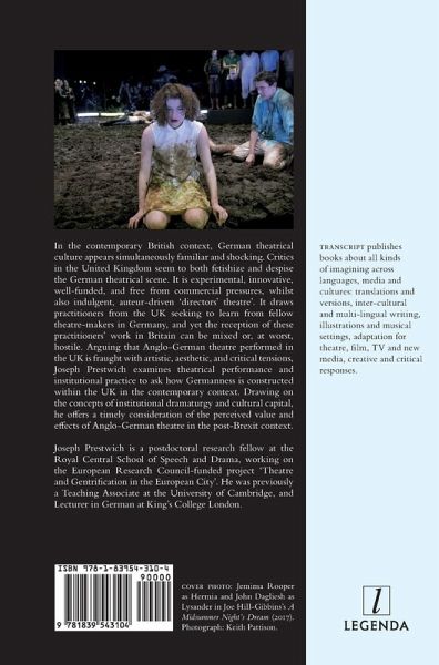 In the contemporary British context, German theatrical culture appears simultaneously familiar and shocking. Critics in the United Kingdom seem to both fetishize and despise the German theatrical scene. It is experimental, innovative, well-funded, and free from commercial pressures, whilst also indulgent, auteur-driven 'directors' theatre'. It draws practitioners from the UK seeking to learn from fellow theatre-makers in Germany, and yet the reception of these practitioners' work in Britain can be mixed or, at worst, hostile. Arguing that Anglo-German theatre performed in the UK is fraught with artistic, aesthetic, and critical tensions, Joseph Prestwich examines theatrical performance and institutional practice to ask how Germanness is constructed within the UK in the contemporary context. Drawing on the concepts of institutional dramaturgy and cultural capital, he offers a timely consideration of the perceived value and effects of Anglo-German theatre in the post-Brexit context. Joseph Prestwich is a postdoctoral research fellow at the Royal Central School of Speech and Drama, working on the European Research Council-funded project 'Theatre and Gentrification in the European City'. He was previously a Teaching Associate at the University of Cambridge, and Lecturer in German at King's College London.
