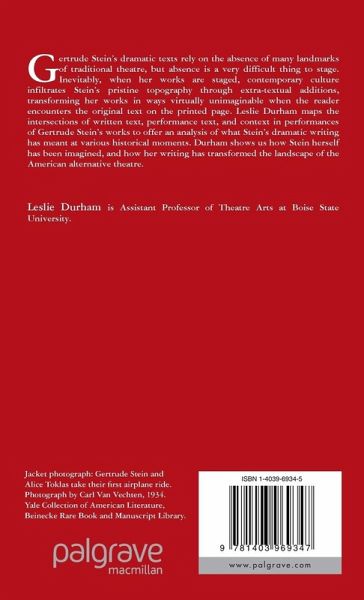 Gertrude Stein's dramatic texts rely on the absence of many landmarks of traditional theatre, but absence is a very difficult thing to stage. Iconoclastic directors and production teams - including Virgil Thomson, the Living Theatre, the Judson Poets Theatre, the Santa Fe Opera, the Glimmerglass Opera, the Wooster Group, Robert Wilson, Anne Bogart, Frank Galati and Heiner Goebbels - have ardently roamed Stein's spare dramatic 'landscapes', but even these convention-defying artists had to fill some of her absences in order to bring the texts to life on stage. Inevitably contemporary culture infiltrates Stein's pristine topography via these extra-textual additions, transforming it in ways virtually unimaginable when the reader encounters the text on the printed page. It is only by mapping the intersections of written text, performance text, and context, that one can gain a full appreciation of what Stein's dramatic writing has meant at various historical moments, how she herself has been imagined, and how her writing has transformed the landscape of the American alternative theatre.