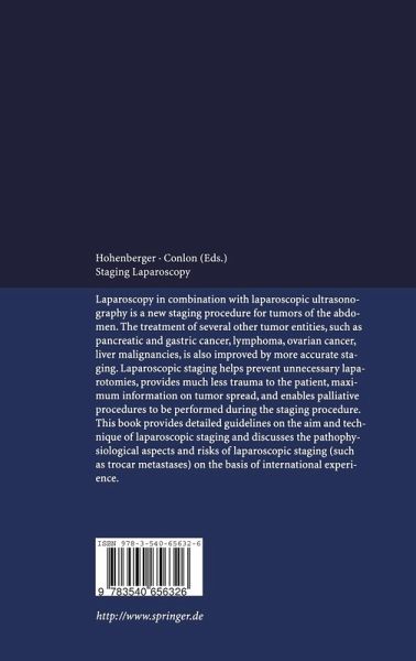 Laparoscopy in combination with laparoscopic ultrasonography is a new staging procedure for tumors of the abdomen. The treatment of several other tumor entities, such as pancreatic and gastric cancer, lymphoma, ovarian cancer, liver malignancies, is also improved by more accurate staging. Laparoscopic staging helps prevent unnecessary laparotomies, provides much less trauma to the patient, maximum information on tumor spread, and enables palliative procedures to be performed during the staging procedure. This book provides detailed guidelines on the aim and technique of laparoscopic staging and discusses the pathophysiological aspects and risks of laparoscopic staging (such as trocar metastases) on the basis of international experience.
