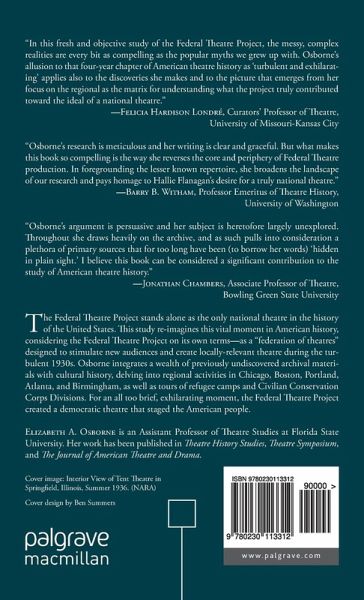 "Osborne's research into the life - and unfortunately, the death - of the Federal Theatre Project (FTP) goes well beyond the project itself. She reveals the full scope of the cultural environment in which the grand experiment existed and shows the ways in which that environment contributed to the theater's successes and failures...It is difficult to avoid being swept along by her obvious enthusiasm for her subject." - New York Journal of Books"In this fresh and objective study of the Federal Theatre Project, the messy, complex realities are every bit as compelling as the popular myths we grew up with. Osborne s allusion to that four-year chapter of American theatre history as turbulent and exhilarating applies also to the discoveries she makes and to the picture that emerges from her focus on the regional as the matrix for understanding what the project truly contributed toward the ideal of a national theatre." - Felicia Hardison Londré, Curators Professor of Theatre, University of Missouri-Kansas City"Osborne s research is meticulous and her writing is clear and graceful. But what makes this book so compelling is the way she reverses the core and periphery of Federal Theatre production. In foregrounding the lesser known repertoire, she broadens the landscape of our research and pays homage to Hallie Flanagan s desire for a truly national theatre." - Barry B. Witham, Professor Emeritus of Theatre History, University of Washington"Osborne s argument is persuasive and hersubject is heretofore largely unexplored. Throughout she draws heavily on the archive, and as such pulls into consideration a plethora of primary sources that for too long have been (to borrow her words) hidden in plain sight. I believe this book can be considered a significant contribution to the study of American theatre history." - Jonathan Chambers, Associate Professor of Theatre, Bowling Green State University