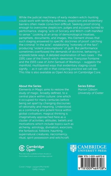 Early modern witch-hunting faced skepticism and evidentiary barriers, making it difficult to convict witches. Judges and accusers used performance staging to overcome these barriers. This Element examines two cases to illustrate ways evidentiary staging can signify in law. This title is also available as Open Access on Cambridge Core.