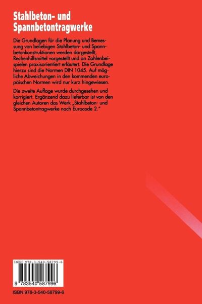 Dieses Lehrbuch bietet in sehr kompakter Form den Stoffumfang für den Stahlbetonbau und Spannbetonbau. Die Grundlage sind die Normen DIN 1045. Auf mögliche Abweichungen in den kommenden europäischen Normen wird nur kurz hingewiesen, dazu ist von den Autoren ein weiteres Werk verfügbar. Die zweite Auflage wurde durchgesehen und korrigiert.