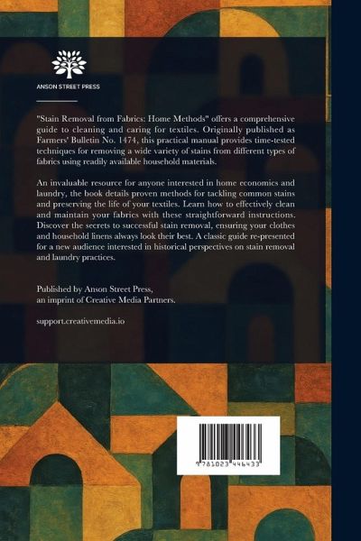 "Stain Removal from Fabrics: Home Methods" offers a comprehensive guide to cleaning and caring for textiles. Originally published as Farmers' Bulletin No. 1474, this practical manual provides time-tested techniques for removing a wide variety of stains from different types of fabrics using readily available household materials. An invaluable resource for anyone interested in home economics and laundry, the book details proven methods for tackling common stains and preserving the life of your textiles. Learn how to effectively clean and maintain your fabrics with these straightforward instructions. Discover the secrets to successful stain removal, ensuring your clothes and household linens always look their best. A classic guide re-presented for a new audience interested in historical perspectives on stain removal and laundry practices. This work has been selected by scholars as being culturally important, and is part of the knowledge base of civilization as we know it. This work is in the public domain in the United States of America, and possibly other nations. Within the United States, you may freely copy and distribute this work, as no entity (individual or corporate) has a copyright on the body of the work. Scholars believe, and we concur, that this work is important enough to be preserved, reproduced, and made generally available to the public. We appreciate your support of the preservation process, and thank you for being an important part of keeping this knowledge alive and relevant.