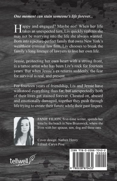 Happy and engaged? Maybe not! When her life takes an unexpected turn, Liv quickly realize she may not be marrying into the life she always wanted. Born into a picture-perfect family who owns New York's wealthiest criminal law firm, Liv chooses to break the family's long lineage of lawyers to live her own life. Jessie, protecting her own heart with a strong front, is a tattoo artist who has been Liv's rock for fourteen years. But when Jessie's ex returns suddenly, the fear for survival is real, and present. For fourteen years of friendship, Liv and Jessie have withstood everything thus far, but unexpectedly both of their lives get stained forever. Cheated on, abused and emotionally damaged, together they push through life trying to create their future while their past lingers.