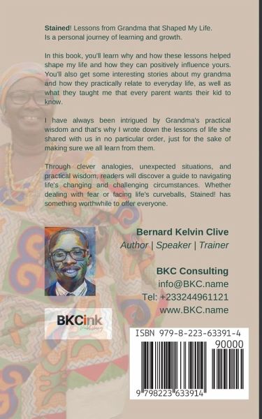Stained! Lessons from Grandma. A journey of learning and growth. In this book, you'll learn why and how these lessons helped shape my life and how they can positively influence yours. You'll also get some interesting stories about my grandma and how they practically relate to everyday life, as well as what they taught me that every parent wants their kid to know. I have always been intrigued by Grandma's practical wisdom and that's why I wrote down the lessons of life she shared with us in no particular order, just for the sake of making sure we all learn from them. Through clever analogies, unexpected situations, and practical wisdom, readers will discover a guide to navigating life's changing and challenging circumstances. Whether dealing with fear or facing life's curveballs, Stained! has something worthwhile to offer everyone.