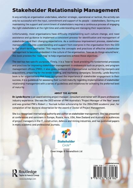 'Met all my needs and more. ...Recommended as a must read...despite having managed stakeholders for years but never stopped to really think of why they present unique problems and how to manage and prevent these issues becoming problems that could delay a project. If you don't read this book it's at your own peril.' F.A. Perry, reviewer on Amazon.co.uk, 5 out of 5 stars 'Dr Bourne's book provides a road map organisations can use to improve their management of stakeholder relationships to the benefit of both the stakeholders and the organisation.' Patrick Weaver, ProjectMangers.net '...The book is written in a way that lends itself to being read from start to finish or used as a reference, with each chapter title being quite self-explanatory... It is likely that any manager or leader who considers their stakeholders important, will find value in Lynda Bourne's book. Some might read out of interest and others will read with a view to bringing about positive change to the way in which stakeholder relationships are managed by their organisations.' Rob Llewellyn, CXO Transform