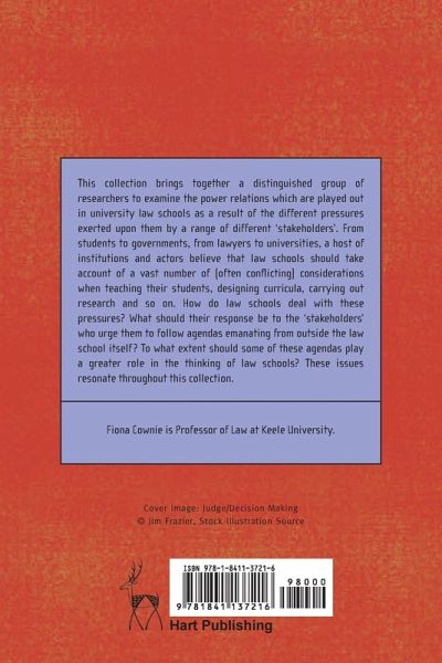 This collection brings together a distinguished group of researchers to examine the power relations which are played out in university law schools as a result of the different pressures exerted upon them by a range of different 'stakeholders'. From students to governments, from lawyers to universities, a host of institutions and actors believe that law schools should take account of a vast number of (often conflicting) considerations when teaching their students, designing curricula, carrying out research and so on. How do law schools deal with these pressures? What should their response be to the 'stakeholders' who urge them to follow agendas emanating from outside the law school itself? To what extent should some of these agendas play a greater role in the thinking of law schools?