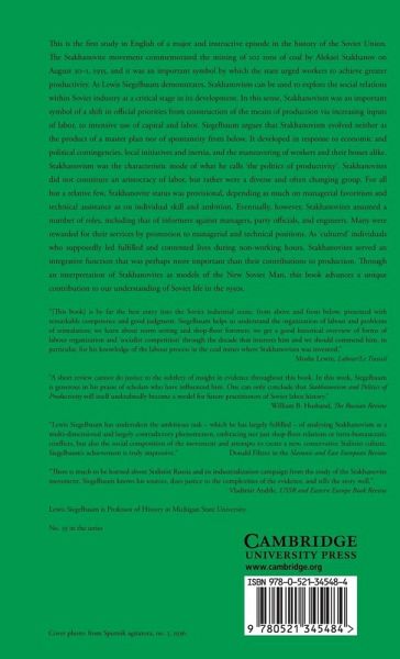 This is a study in English of a major and instructive episode in the history of the Soviet Union. The Stakhanovite movement commemorated the mining of 102 tons of coal by Aleksei Stakhanov on August 30-1, 1935, and it was an important symbol by which the state urged workers to achieve greater productivity. As Lewis Siegelbaum demonstrates, Stakhanovism can be used to explore the social relations within Soviet industry at a critical stage in its development. In this sense, Stakhanovism was an important symbol of a shift in official priorities from construction of the means of production via increasing inputs of labor, to intensive use of capital and labor. Siegelbaum argues that Stakhanovism evolved neither as the product of a master plan nor of spontaneity from below. It developed in response to economic and political contingencies, local initiatives and inertia, and the maneuvering of workers and their bosses alike. Through an interpretation of Stakhanovites as models of the New Soviet Man, this book advances a unique contribution to our understanding of Soviet life in the 1930s.