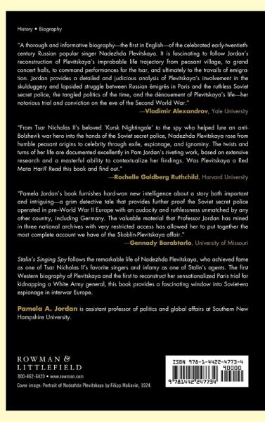 Stalin's Singing Spy follows the life of NadezhdaPlevitskaya, who achieved fame as one of Nicholas II's favorite singers and infamy as one of Stalin's agents. The first Western biography of this key figure and the first to reconstruct her sensationalized trial for kidnapping a White Army general, this book provides a fascinating window into Soviet-era espionage in interwar Europe.