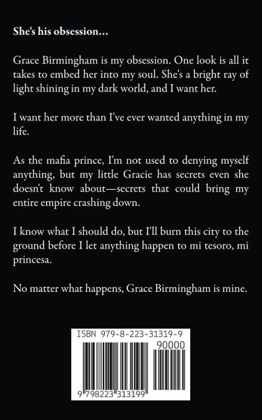 She's his obsession… Grace Birmingham is my obsession. One look is all it takes to embed her into my soul. She's a bright ray of light shining in my dark world, and I want her. I want her more than I've ever wanted anything in my life. As the mafia prince, I'm not used to denying myself anything, but my little Gracie has secrets even she doesn't know about—secrets that could bring my entire empire crashing down. I know what I should do, but I'll burn this city to the ground before I let anything happen to mi tesoro, mi princesa. No matter what happens, Grace Birmingham is mine.
