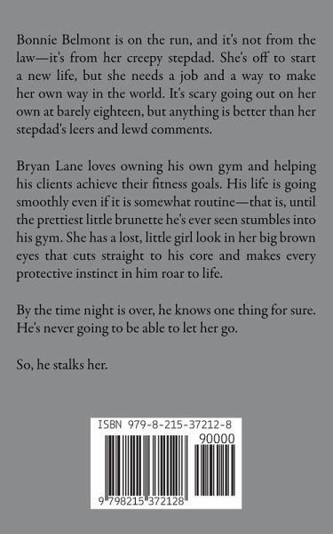 Bonnie Belmont is on the run, and it's not from the law—it's from her creepy stepdad. She's off to start a new life, but she needs a job and a way to make her own way in the world. It's scary going out on her own at barely eighteen, but anything is better than her stepdad's leers and lewd comments. Bryan Lane loves owning his own gym and helping his clients achieve their fitness goals. His life is going smoothly even if it is somewhat routine—that is, until the prettiest little brunette he's ever seen stumbles into his gym. She has a lost, little girl look in her big brown eyes that cuts straight to his core and makes every protective instinct in him roar to life. By the time night is over, he knows one thing for sure. He's never going to be able to let her go. So, he stalks her.