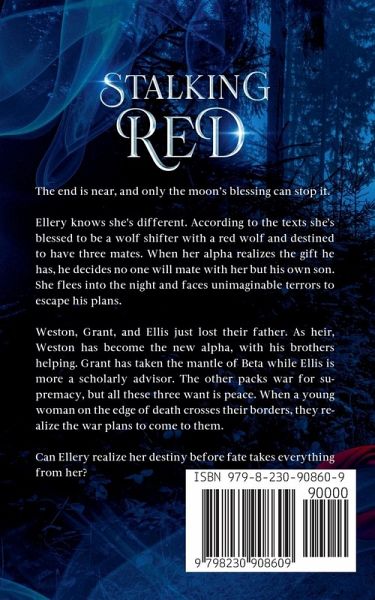 The end is near, and only the moon's blessing can stop it. Ellery knows she's different. According to the texts she's blessed to be a wolf shifter with a red wolf and destined to have three mates. When her alpha realizes the gift he has, he decides no one will mate with her but his own son. She flees into the night and faces unimaginable terrors to escape his plans. Weston, Grant, and Ellis just lost their father. As heir, Weston has become the new alpha, with his brothers helping. Grant has taken the mantle of Beta while Ellis is more a scholarly advisor. The other packs war for supremacy, but all these three want is peace. When a young woman on the edge of death crosses their borders, they realize the war plans to come to them. Can Ellery realize her destiny before fate takes everything from her? Staking Red is a standalone why choose. If you like steamy romantasy with wolf shifters, you'll love this Little Red Riding Hood retelling. Read today for a romance that will keep you reading.