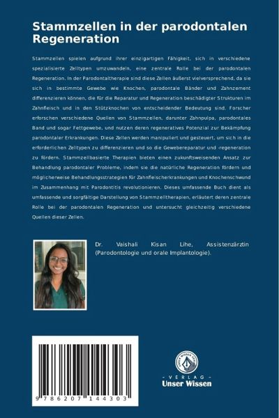 Stammzellen spielen aufgrund ihrer einzigartigen Fähigkeit, sich in verschiedene spezialisierte Zelltypen umzuwandeln, eine zentrale Rolle bei der parodontalen Regeneration. In der Parodontaltherapie sind diese Zellen äußerst vielversprechend, da sie sich in bestimmte Gewebe wie Knochen, parodontale Bänder und Zahnzement differenzieren können, die für die Reparatur und Regeneration beschädigter Strukturen im Zahnfleisch und in den Stützknochen von entscheidender Bedeutung sind. Forscher erforschen verschiedene Quellen von Stammzellen, darunter Zahnpulpa, parodontales Band und sogar Fettgewebe, und nutzen deren regeneratives Potenzial zur Bekämpfung parodontaler Erkrankungen. Diese Zellen werden manipuliert und gesteuert, um sich in die erforderlichen Zelltypen zu differenzieren und so die Gewebereparatur und -regeneration zu fördern. Stammzellbasierte Therapien bieten einen zukunftsweisenden Ansatz zur Behandlung parodontaler Probleme, indem sie die natürliche Regeneration fördern und möglicherweise Behandlungsstrategien für Zahnfleischerkrankungen und Knochenschwund im Zusammenhang mit Parodontitis revolutionieren. Dieses umfassende Buch dient als umfassende und sorgfältige Darstellung von Stammzelltherapien, erläutert deren zentrale Rolle bei der parodontalen Regeneration und untersucht gleichzeitig verschiedene Quellen dieser Zellen.