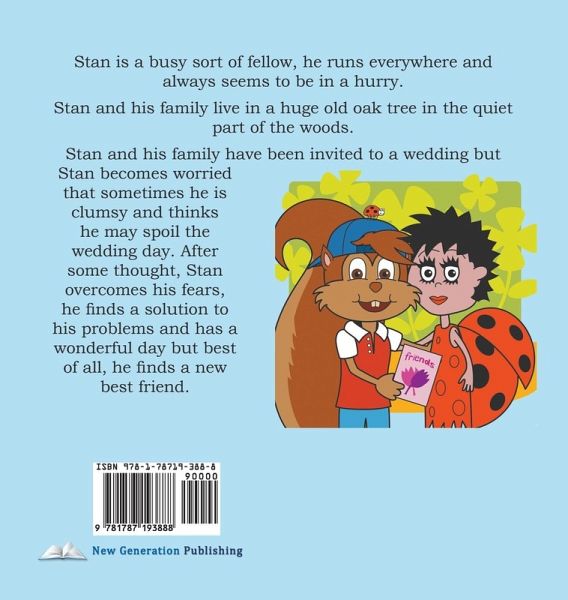 Stan is a busy sort of fellow, he runs everywhere and always seems to be in a hurry. Stan and his family live in a huge old oak tree in the quiet part of the woods. Stan and his family have been invited to a wedding but Stan becomes worried that sometimes he is clumsy and thinks he may spoil the wedding day. After some thought, Stan overcomes his fears, he finds a solution to his problem, has a wonderful day and best of all finds a new best friend.