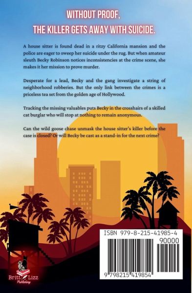 Without proof, the killer gets away with suicide. A house sitter is found dead in a ritzy California mansion and the police are eager to sweep her suicide under the rug. But when amateur sleuth Becky Robinson notices inconsistencies at the crime scene, she makes it her mission to prove murder. Desperate for a lead, Becky and the gang investigate a string of neighborhood robberies. But the only link between the crimes is a priceless tea set from the golden age of Hollywood. Tracking the missing valuables puts Becky in the crosshairs of a skilled cat burglar who will stop at nothing to remain anonymous. Can the wild goose chase unmask the house sitter's killer before the case is closed? Or will Becky be cast as a stand-in for the next crime? ---------------- Stand-In Murder is the unpredictable second installment in the Hollywood Whodunit cozy mystery series. If you love clumsy heroines, a Hollywood backdrop, quirky suspects, and an adorable rescue puppy this series is for you! Hollywood Whodunit Series OrderBook 0: Lake Day Shenanigans Book 1: Prime Time Murder Book 2: Stand-In Murder Book 3: Music City Murder Book 4. Trap Door Murder Book 5: Fool's Gold Murder Book 6: Holly Jolly Murder Book 7: Blue Suede Murder Book 8: Family Reunion Murder Book 9: Summer Vacation Murder Book 10: Sunlight Swindler Murder Book 11: Castle Island Murder