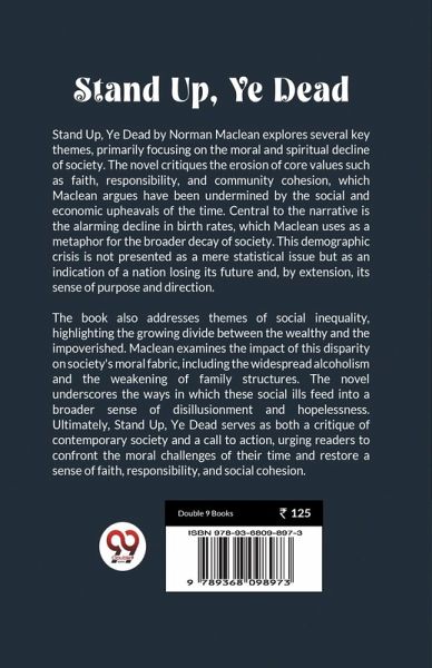 Stand Up, Ye Dead by Norman Maclean explores several key themes, primarily focusing on the moral and spiritual decline of society. The novel critiques the erosion of core values such as faith, responsibility, and community cohesion, which Maclean argues have been undermined by the social and economic upheavals of the time. Central to the narrative is the alarming decline in birth rates, which Maclean uses as a metaphor for the broader decay of society. This demographic crisis is not presented as a mere statistical issue but as an indication of a nation losing its future and, by extension, its sense of purpose and direction. The book also addresses themes of social inequality, highlighting the growing divide between the wealthy and the impoverished. Maclean examines the impact of this disparity on society's moral fabric, including the widespread alcoholism and the weakening of family structures. The novel underscores the ways in which these social ills feed into a broader sense of disillusionment and hopelessness. Ultimately, Stand Up, Ye Dead serves as both a critique of contemporary society and a call to action, urging readers to confront the moral challenges of their time and restore a sense of faith, responsibility, and social cohesion.