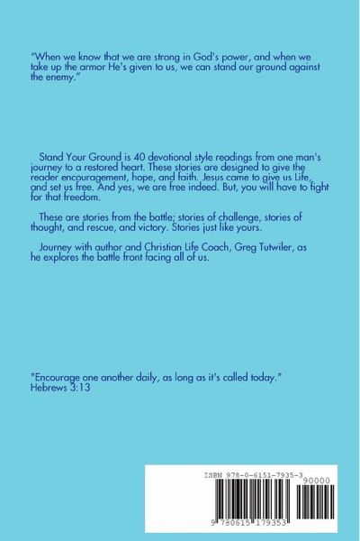 40 devotional style readings from one man's journey to a restored heart. These stories are designed to give the reader encouragement, hope, and faith. Jesus came to give us Life, and set us free. And you are free indeed. But, you will have to fight for that freedom. These are stories from the battle; stories of challenge, stories of thought, and rescue, and victory. Stories just like yours. Journey with author and Christian Life Coach, Greg Tutwiler, as he explores the battle front facing all of us.