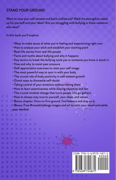 Want to raise your self-esteem and build confidence? Want the strength to stand up for yourself and your ideas? Are you struggling with bullying or know someone who does? Then keep reading: If you often feel afraid of rocking the boat, feel defeated by stronger personalities, or struggle to speak up even when your ideas are better, it could have a negative domino effect on your life progress. Like always going with what your friends want, without holding much space for your own passions and interests. Or missing big opportunities, with your brilliant ideas piled up in a drawer while others get credit instead. It feels so suffocating, yet so hard to break through. Discover how you can change this! Firstly, you aren't alone. According to Forbes, around 85% of people experience low self-esteem at some point in their lives. Secondly, it's totally possible to turn things around. Experts from Psychology Today showcased a vast array of ways many people build confidence and resilience using progressive cognitive exercises. But everyone is different. How do you actually train your mind in a way that works for you? In this book you'll explore: Ways to make sense of what you're feeling and experiencing right now How to analyze your sitch and establish your starting point Real-life stories from real-life people Facts and myths about bullying and why it happens Key tactics to break the bullying cycle you or someone you know is stuck in How and why to resist peer pressure Self-appreciation exercises to raise your self-image The most powerful way to sync in with your body The crucial role of body positivity in self-esteem growth Direct ways to dismantle self-doubt Taking control of your emotions without hating them How to learn assertiveness while staying objective and fair The one crucial mindset change that turns people into go-getters How to make sure you never lose yourself, your ideas, or values Bonus chapter: Make the most out of change and stay on firm ground Bonus: Free #moodchallenge images and art to calm your mood and settle your mindset Time to kickstart the glow up! Build your confidence and let it grow strong roots. This book outlines your steps exactly in the right order, while you keep your own pace to avoid burnout. So you can make steady progress even if right now you don't know where to start, or are doubting your strength, and especially if you've tried tackling this before but couldn't break through. Sounds promising? Grab your book now.