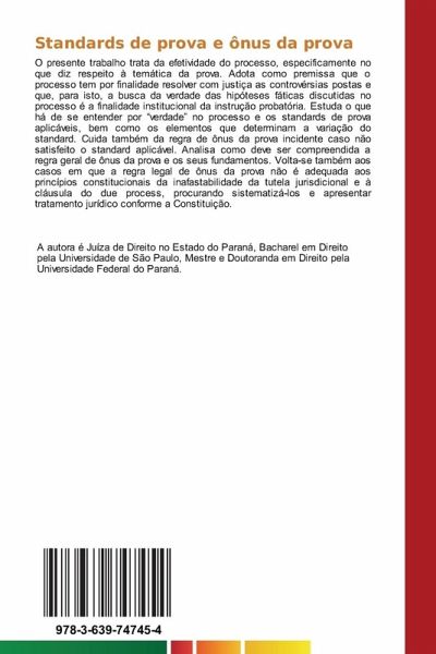 O presente trabalho trata da efetividade do processo, especificamente no que diz respeito à temática da prova. Adota como premissa que o processo tem por finalidade resolver com justiça as controvérsias postas e que, para isto, a busca da verdade das hipóteses fáticas discutidas no processo é a finalidade institucional da instrução probatória. Estuda o que há de se entender por verdade no processo e os standards de prova aplicáveis, bem como os elementos que determinam a variação do standard. Cuida também da regra de ônus da prova incidente caso não satisfeito o standard aplicável. Analisa como deve ser compreendida a regra geral de ônus da prova e os seus fundamentos. Volta-se também aos casos em que a regra legal de ônus da prova não é adequada aos princípios constitucionais da inafastabilidade da tutela jurisdicional e à cláusula do due process, procurando sistematizá-los e apresentar tratamento jurídico conforme a Constituição.
