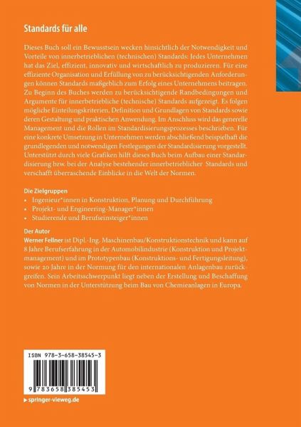 Dieses Buch soll ein Bewusstsein wecken hinsichtlich der Notwendigkeit und Vorteile von innerbetrieblichen (technischen) Standards: Jedes Unternehmen hat das Ziel, effizient, innovativ und wirtschaftlich zu produzieren. Für eine effiziente Organisation und Erfüllung von zu berücksichtigenden Anforderungen können Standards maßgeblich zum Erfolg eines Unternehmens beitragen. Zu Beginn des Buches werden zu berücksichtigende Randbedingungen und Argumente für innerbetriebliche (technische) Standards aufgezeigt. Es folgen mögliche Einteilungskriterien, Definition und Grundlagen von Standards sowie deren Gestaltung und praktischen Anwendung. Im Anschluss wird das generelle Management und die Rollen im Standardisierungsprozesses beschrieben. Für eine konkrete Umsetzung in Unternehmen werden abschließend beispielhaft die grundlegenden und notwendigen Festlegungen der Standardisierung vorgestellt. Unterstützt durch viele Grafiken hilft dieses Buch beim Aufbau einer Standardisierung bzw. beider Analyse bestehender innerbetrieblicher Standards und verschafft überraschende Einblicke in die Welt der Normen.