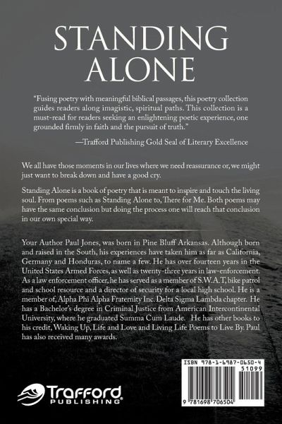 We all have those moments in our lives where we need reassurance or, we might just want to break down and have a good cry. Standing Alone is a book of poetry that is meant to inspire and touch the living soul. From poems such as Standing Alone to, There for Me. Both poems may have the same conclusion but doing the process one will reach that conclusion in our own special way.