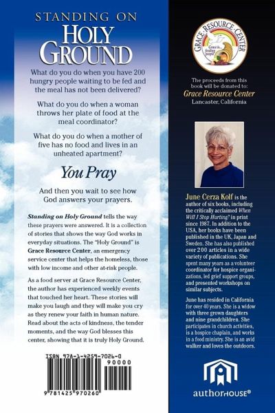 What do you do when you have 200 hungry people waiting to be fed and the meal has not been delivered? What do you do when a woman throws her plate of food at the meal coordinator? What do you do when a mother of five has no food and lives in an unheated apartment? You pray. And then you wait to see how God answers your prayers. Standing on Holy Ground tells the way these prayers were answered and is a compilation of many more stories that show the way God works in everyday situations. The "Holy Ground" is Grace Resource Center, an emergency service center that helps the homeless, those with low income, and other at-risk people. As a food server at Grace Resource Center, the author has experienced weekly events that touched her heart. These stories will make you laugh, they will make you cry, but mostly, they will confirm your faith in human nature as you read about the acts of kindness, the tender moments, and the way God blesses this center, and all who come into contact with it, confirming that it is truly Holy Ground. -------------------------- The proceeds from this book will be donated to Grace Resource Center, Lancaster