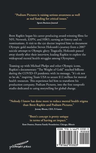 Standing on Podiums: The Death of Impact Storytelling in Hollywood and the Birth of a Nonprofit Studio is the story of Brett Rapkin. He began his career producing award-winning films for NFL Network, ESPN, and HBO, earning an Emmy and six nominations. A visit to the eye doctor inspired him to document Olympic gold medalist Steven Holcomb's journey from a 2007 suicide attempt to Olympic glory. Tragically, Holcomb passed away shortly after their interview, leading Rapkin to explore the widespread mental health struggles among Olympians. Teaming up with Michael Phelps and other Olympic icons, Rapkin's documentary The Weight of Gold reached billions during the COVID-19 pandemic with its message, "It's ok not to be ok," inspiring Team USA to secure $12 million for mental health resources. This experience led him to transform his production company, Podium Pictures, into the first nonprofit studio dedicated to using storytelling for global change.