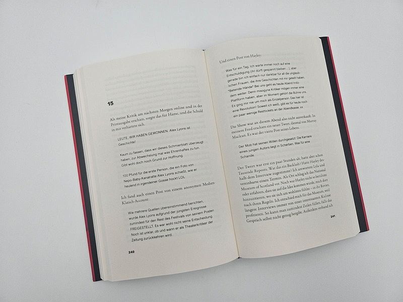 »Ein flüssiges, feingliederiges Buch, das durch eine spannende Handlung und zeitgenössische Themen wie MeToo und Cancel-Culture besticht.« Moritz Holler WDR - Westart 20250809