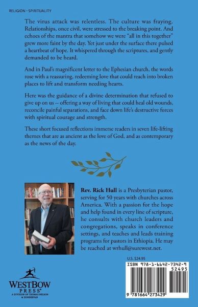 The virus attack was relentless. The culture was fraying. Relationships, once civil, were stressed to the breaking point. And echoes of the mantra that somehow we were "all in this together" grew more faint by the day. Yet just under the surface there pulsed a heartbeat of hope. It whispered through the scriptures, and gently demanded to be heard. And in Paul's magnificent letter to the Ephesian church, the words rose with a reassuring, redeeming love that could reach into broken places to lift and transform needing hearts. Here was the guidance of a divine determination that refused to give up on us -- offering a way of living that could heal old wounds, reconcile painful separations, and face down life's destructive forces with spiritual courage and strength. These short focused reflections immerse readers in seven life-lifting themes that are as ancient as the love of God, and as contemporary as the news of the day.