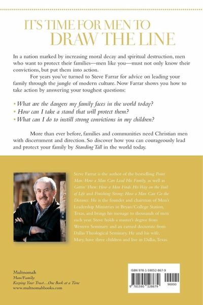 A leader must stand tall enough for his followers to find him. "As the God-appointed captain of his family," says Steve Farrar, "a man faces the challenge of spying out the social territory, marking danger zones, and taking stands to protect those in his charge." It's an active leadership role -- and Farrar's been training men to succeed in it for over ten years. In this paperback rerelease of his popular Standing Tall, the men's ministries leader "walks tall" through America -- observing politics, abortion, the gay movement, media trends, and the loss of our "moral boundaries." Farrar offers men sure biblical foundations on which to stand for faith-based living -- closing with "Seven Ways to Help Your Kids Stand Tall." A study guide/appendix makes it great for group use, too!