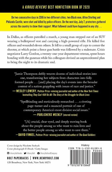 Standoff is award-winning journalist Jamie Thompson's gripping account of a deadly night in Dallas, told through the eyes of those at the center of the events, who offer a nuanced look at race and policing in America. On the evening of July 7, 2016, protesters gathered in cities across the nation after police shot two Black men, Philando Castile and Alton Sterling. As officers patrolled a march in Dallas, a young man stepped out of an SUV wearing a bulletproof vest and carrying a high-powered rifle. He killed five officers and wounded eleven others. It fell to a small group of cops to corner the shooter inside a community college, where a fierce gun battle was followed by a stalemate. The crisis negotiator Larry Gordon, a twenty-one-year department veteran, spent hours bonding with the gunman-over childhood ghosts and death and shared experiences of racial injustice in America-while his colleagues devised an unprecedented plan to bring the night to its dramatic end. Thompson's minute-by-minute account includes intimate portrayals of the negotiator, a surgeon who operated on the fallen officers, a mother of four shot down in the street, and the SWAT officers tasked with stopping the gunman. This is a deeply affecting story of real people navigating a terrifying crisis and a city's attempts to heal its divisions.