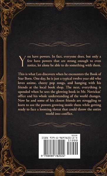 You have powers. In fact, everyone does, but only a few have powers that are strong enough to even notice, let alone be able to do something with them. This is what Leo discovers when he encounters the Book of Star Born. One day, he is just a typical twelve year old who loves anime, cheesy pop songs, and hanging with his friends at the local book shop. The next, everything is upended when he sees the glowing book in Mr. Novickas' office and his whole understanding of the world changes. Now he and some of his closest friends are struggling to learn to use the powers growing inside them while getting ready to face a looming threat that could throw the entire world into conflict.