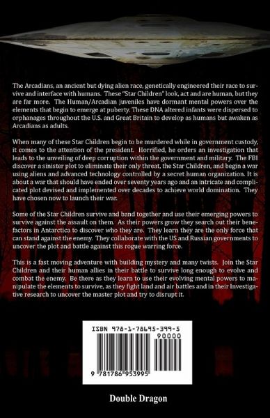 The Arcadians, an ancient but dying alien race, genetically engineered their race to survive and interface with humans. These "Star Children" look, act and are human, but they are far more. The Human/Arcadian juveniles have dormant mental powers over the elements that begin to emerge at puberty. These DNA altered infants were dispersed to orphanages throughout the U.S. and Great Britain to develop as humans but awaken as Arcadians as adults. When many of these Star Children begin to be murdered while in government custody, it comes to the attention of the president. Horrified, he orders an investigation that leads to the unveiling of deep corruption within the government and military. The FBI discover a sinister plot to eliminate their only threat, the Star Children, and begin a war using aliens and advanced technology controlled by a secret human organization. It is about a war that should have ended over seventy years ago and an intricate and complicated plot devised and implemented over decades to achieve world domination. They have chosen now to launch their war. Some of the Star Children survive and band together and use their emerging powers to survive against the assault on them. As their powers grow they search out their benefactors in Antarctica to discover who they are. They learn they are the only force that can stand against the enemy. They collaborate with the US and Russian governments to uncover the plot and battle against this rogue waring force. This is a fast moving adventure with building mystery and many twists. Join the Star Children and their human allies in their battle to survive long enough to evolve and combat the enemy. Be there as they learn to use their evolving mental powers to manipulate the elements to survive, as they fight land and air battles and in their Investigative research to uncover the master plot and try to disrupt it.